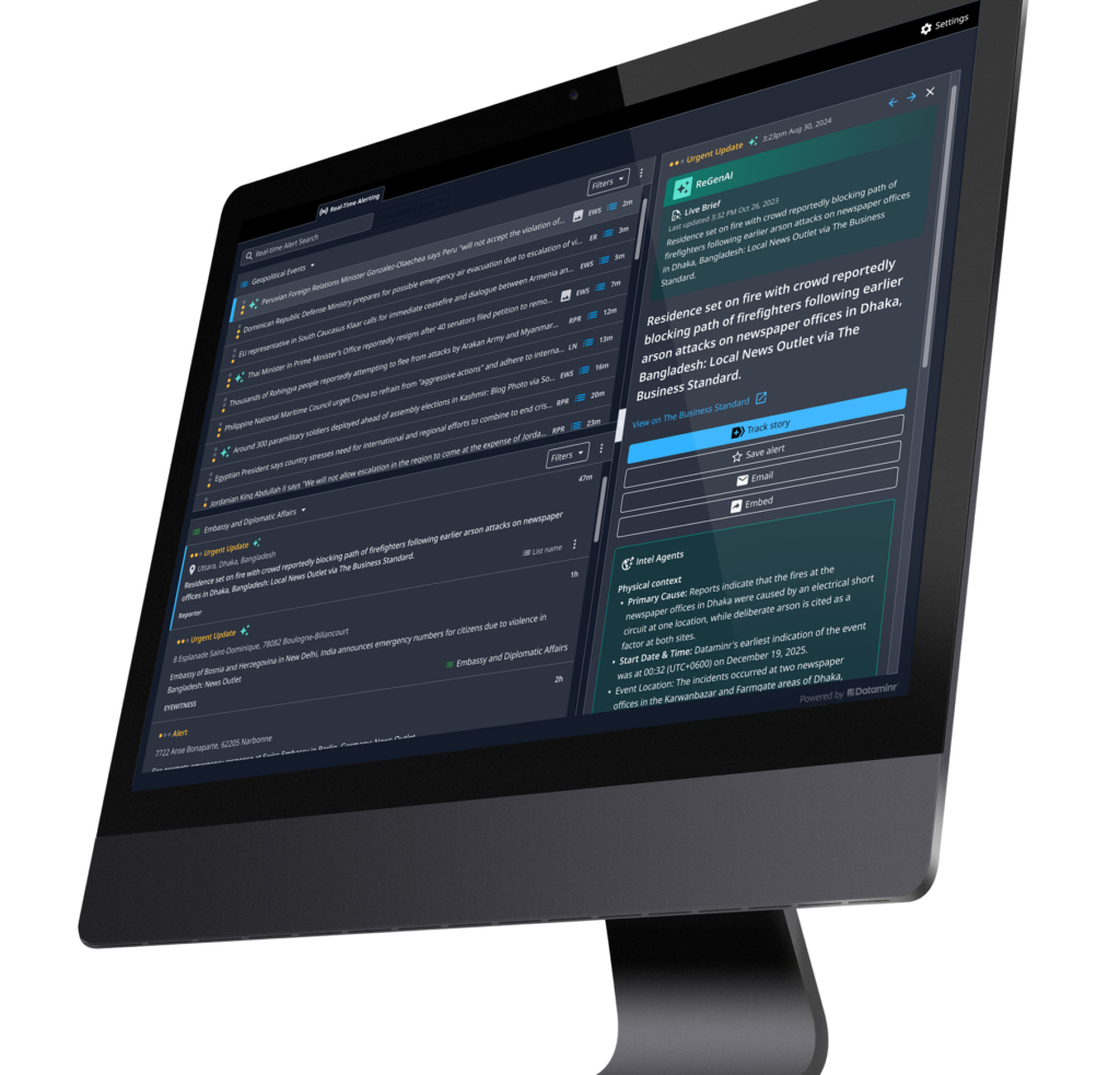 Dataminr for News combines industry-leading AI with 12+ years of data to equip news organizations with the real-time insights, global coverage, and corroborated information for confident reporting.