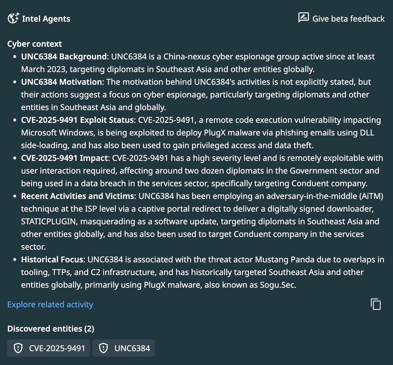 - CVE-2025-9491 was weaponized as a true zero day prior to disclosure of UNC6384 use. While difficult to defend against, organizations nonetheless can leverage visibility and monitoring of post-exploitation activity (such as installation and use of the long-standing PlugX tool) to identify a breach at relatively early stages.