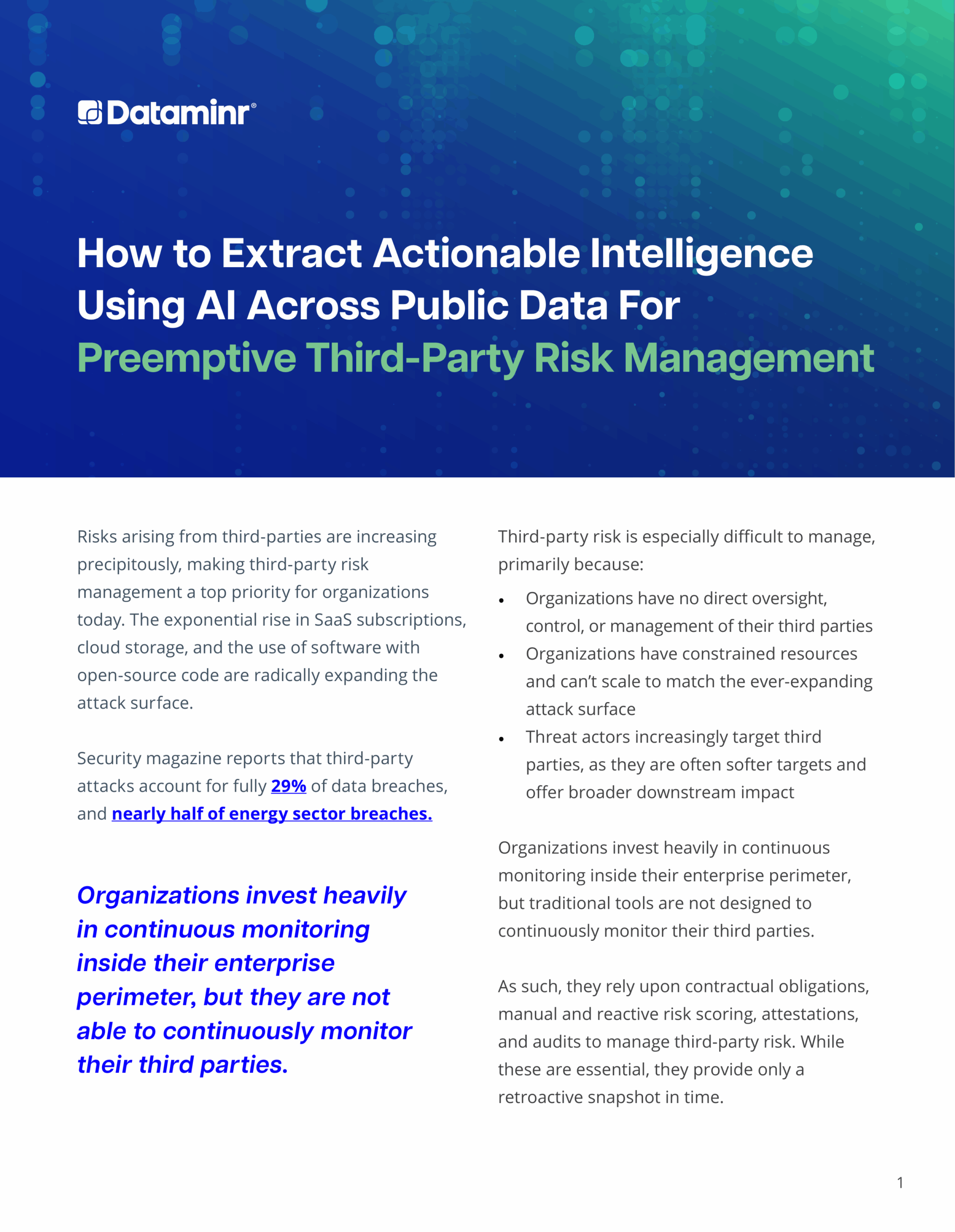 Dataminr regularly beats out other vendors when alerting us to breaking news with their customizable features. Whether the alerts notify us of widespread exploitation of a critical vulnerability or a ransomware attack on a third-party vendor, our analysts can quickly identify threats, assess risk, and implement defenses at a rapid pace.”